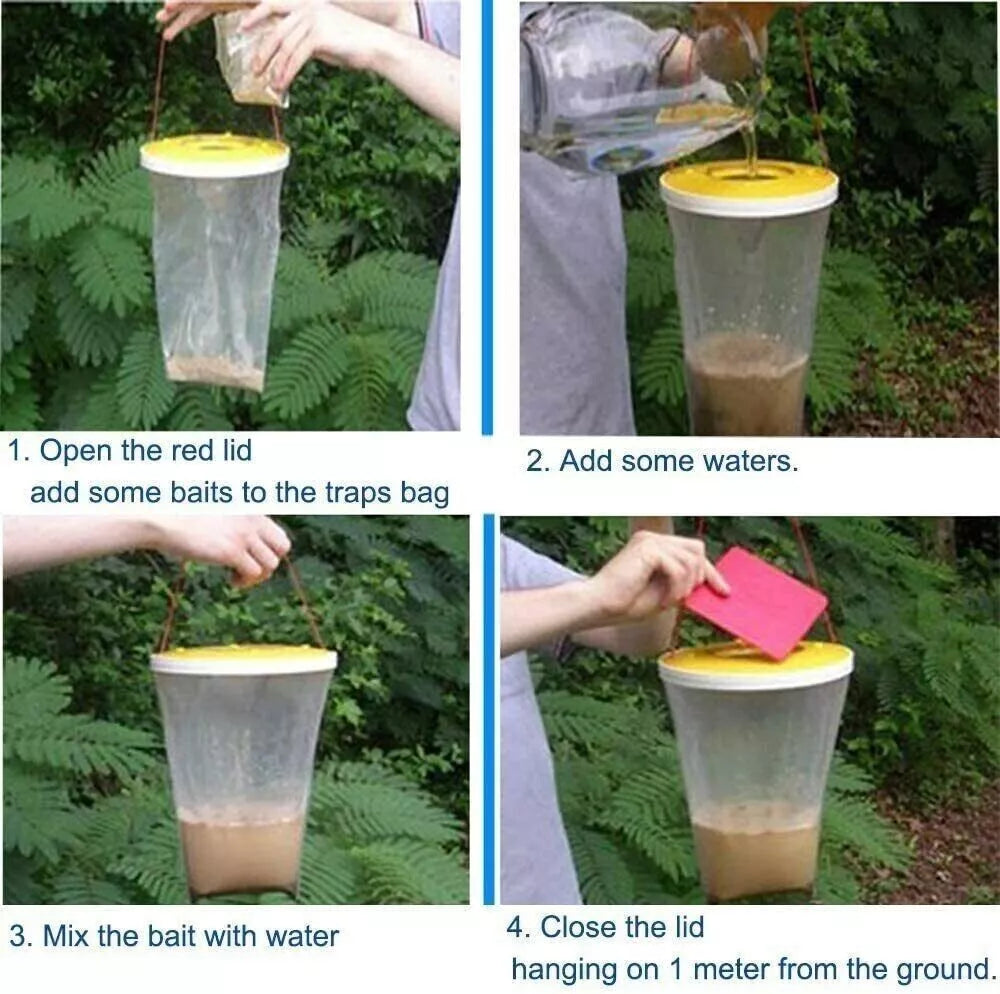 EASY TO USE: Simply take the red jacket off to expose the fly bag entrance. Then add bait to activate and hang the trap 20 feet away from any living space. Once the trap is full, just discard it.