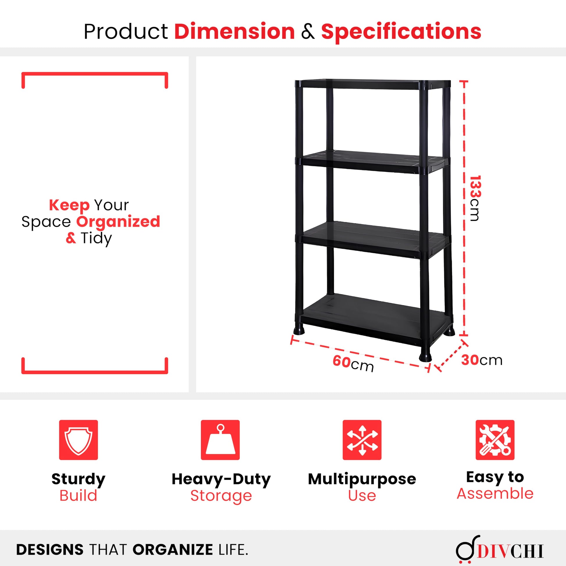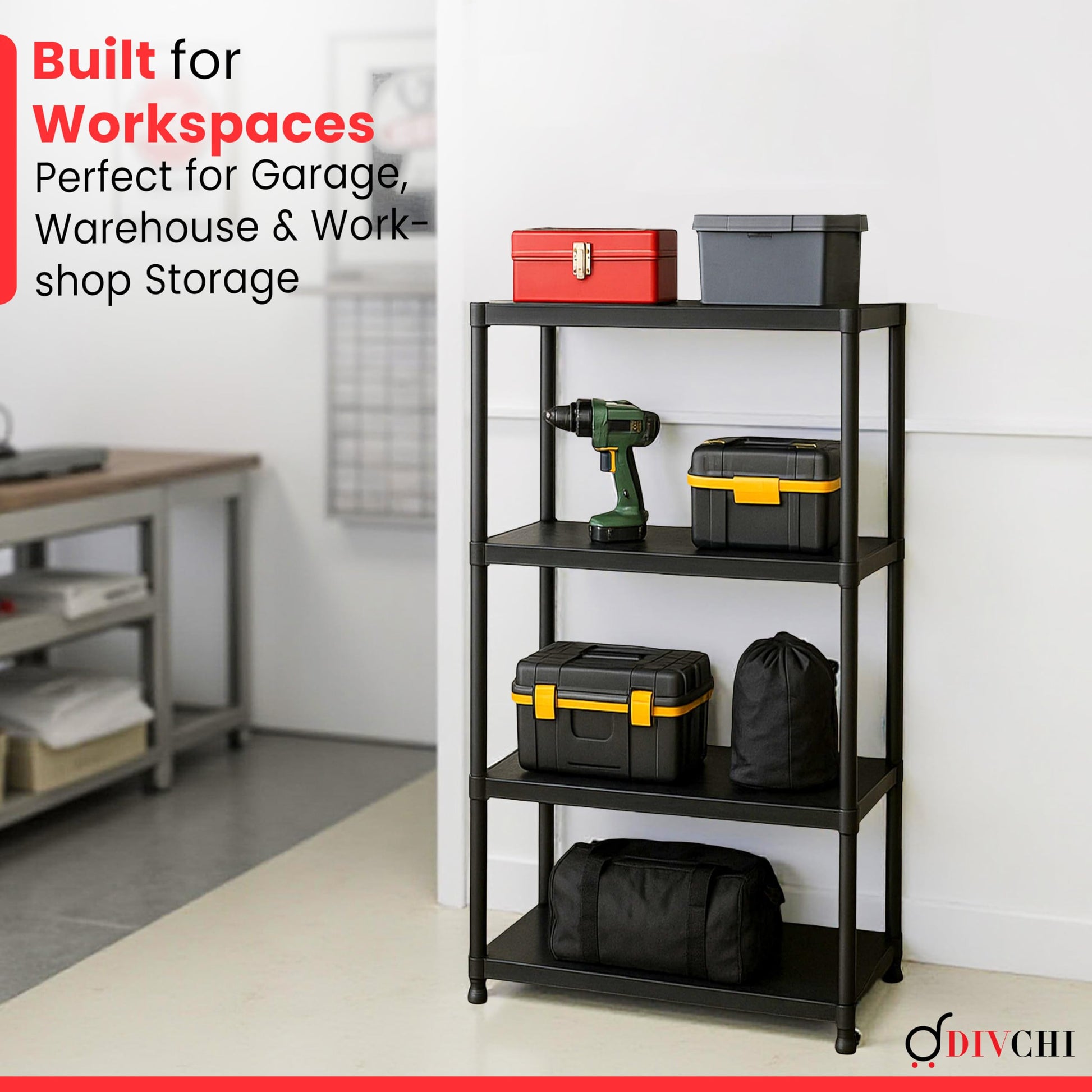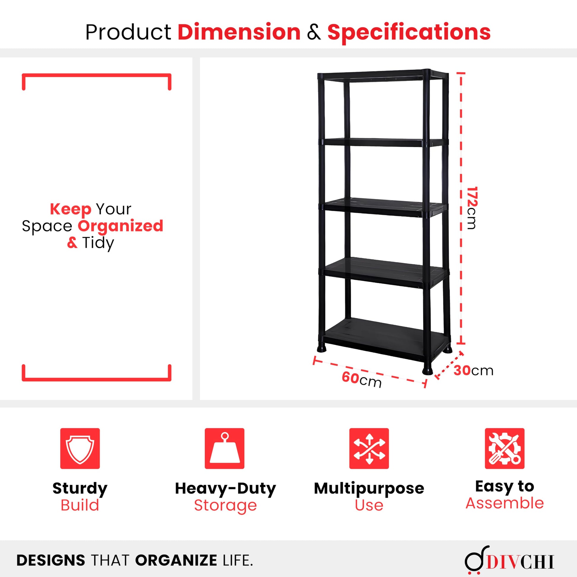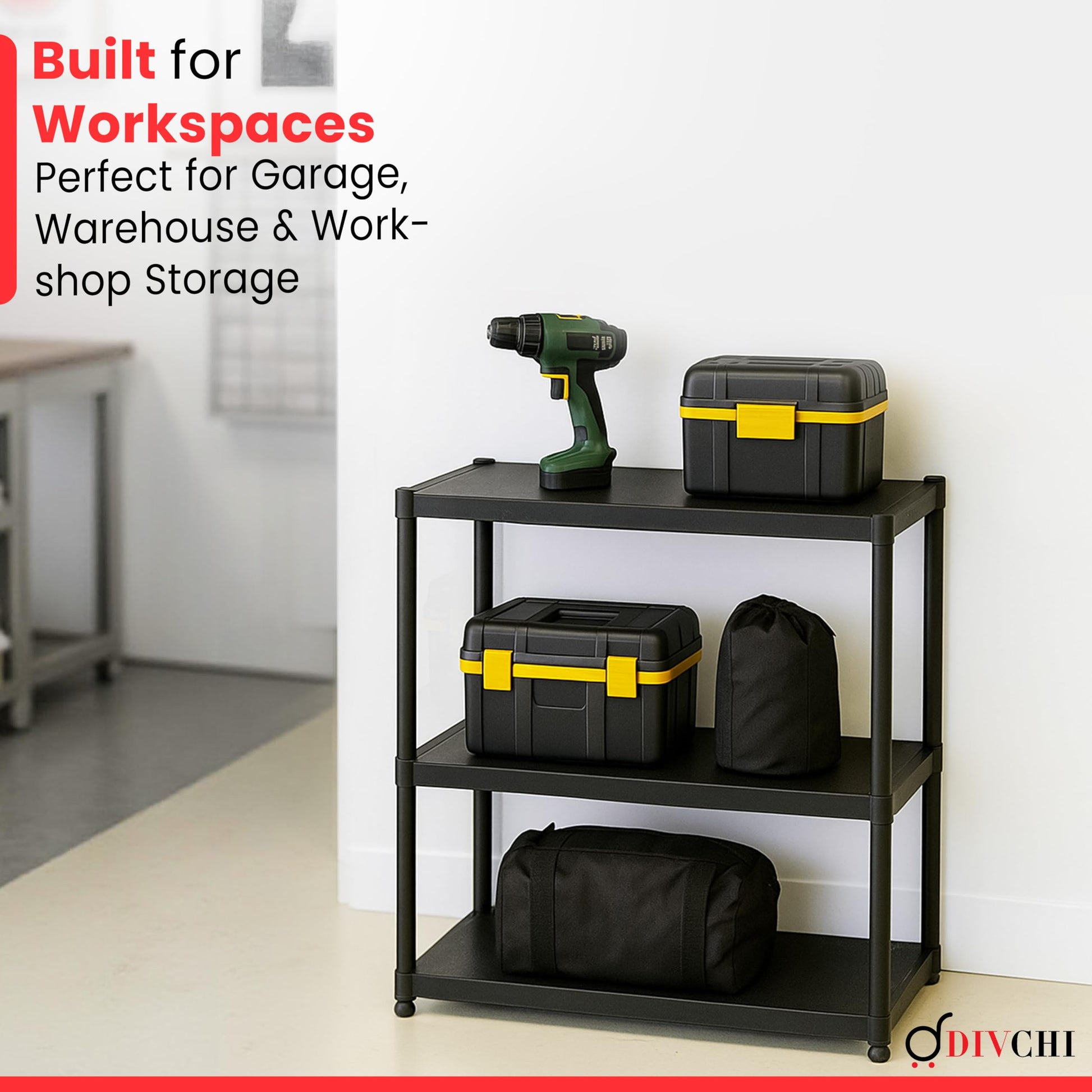Maximise your storage space with the DIVCHI 3, 4 or 5 Tier Heavy Duty Shelving Unit. Designed for strength, stability and everyday practicality, this sleek black storage rack is ideal for garages, offices, kitchens, utility rooms, or home organisation.